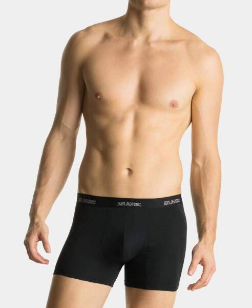 Férfi boxerek - könnyű, légáteresztő és "hűvös" tapintású kötöttáru - kényelmes és puha elasztikus derékrész Atlantic felirattal - tökéletesen illeszkednek a testhez - a bokszolók sportos természete - dobozba csomagolva Összetétel: 88% mikromodális, 12% elasztán