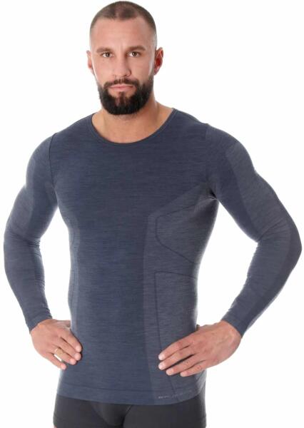 BRUBECK COMFORT WOOL Férfi hosszú ujjú merinó gyapjú aláöltözet felső - Sötétkék - brubecksport