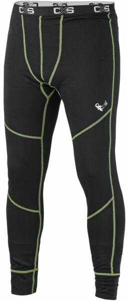 Extra meleg férfi funkcionális nadrág, hosszú lábakkal, fekete-zöld színben. Anyag: 92% poliészter, 8% elasztán, belül finoman anyagú. Gramázs: 230 g/m2.