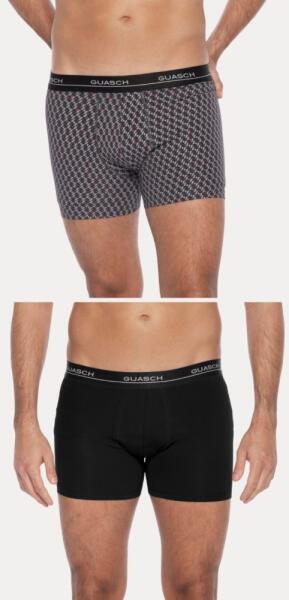 A pamut boxerek könnyűek, puhák és kényelmesek, amihez a jó szabás és a széles elasztikus derék is hozzájárul, amit a GUASCH felirat egészít ki. A boxerek M, L, XL, XXL méretben készülnek.