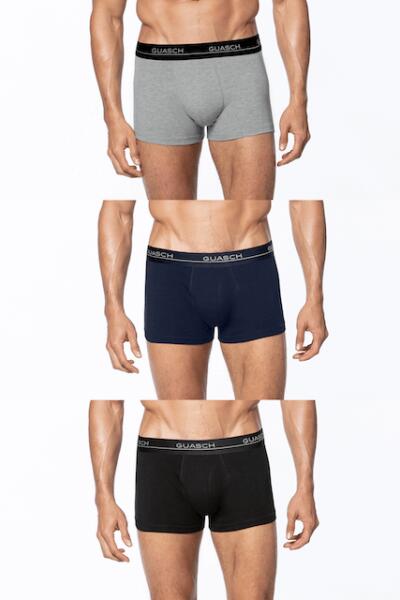 A pamut boxerek könnyűek, puhák és kényelmesek, amihez a jó szabás és a széles elasztikus derék is hozzájárul, amit a GUASCH felirat egészít ki. A boxerek M, L, XL, XXL méretben készülnek.