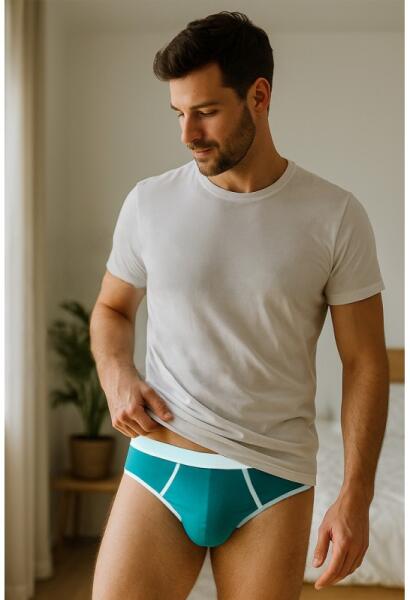 SmithBoxer Fehér szegős slip alsó, tűrkiz színben