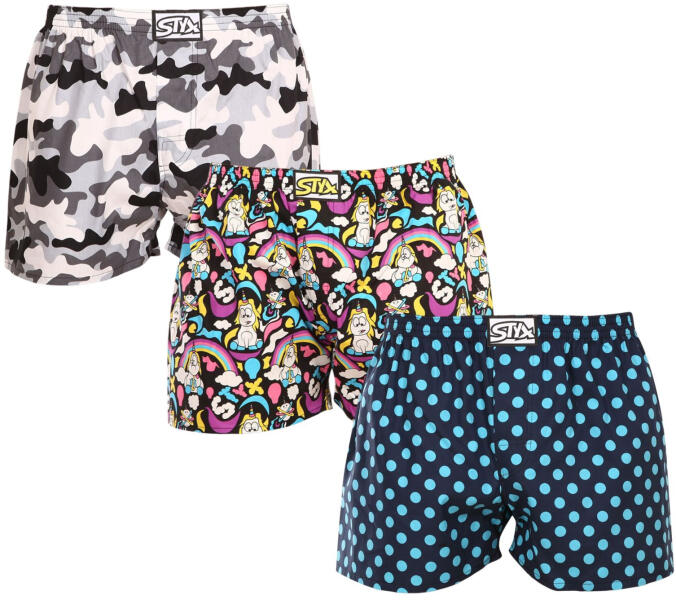 Styx 3PACK férfi bő szárú boxeralsók Styx art klasszikus gumipánt többszínű (3A11871) M
