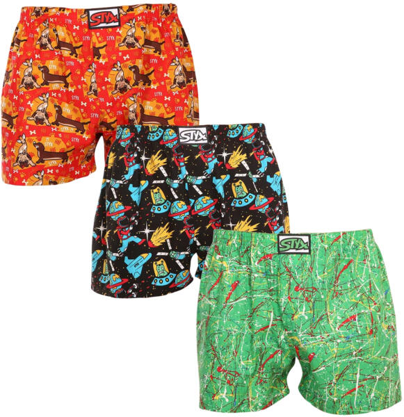 Styx 3PACK férfi bő szárú boxeralsók Styx art klasszikus gumipánt többszínű (3A13314) XL