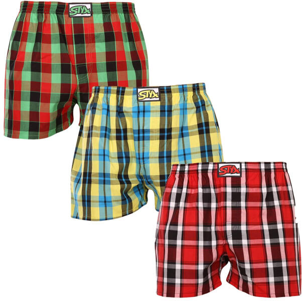 Styx 3PACK férfi bő szárú boxeralsók Styx klasszikus gumipánt többszínű (3A093338) S