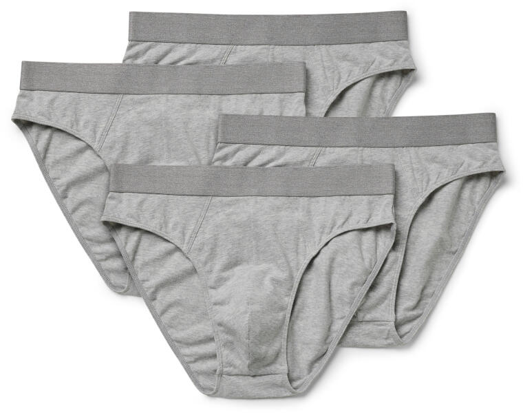 4 db férfi alsónadrág, szürke Szín: 4x melírozott szürke Anyag: 95% pamut, 5% elasztán (Creora®) Különösen lapos, rugalmas derékpánt, belseje puhán bolyhozottKellemesen puha pamut-sztreccs anyag Kétrétegű elülső betétMárkás elasztánnal: formatartó, tökéletesen áll, rendkívül kényelmes viseletGOTS organic – konverziós anyagokból, CU 809415 minősítettEzek az alsók elősegítik a fenntartható gyapottermesztést
