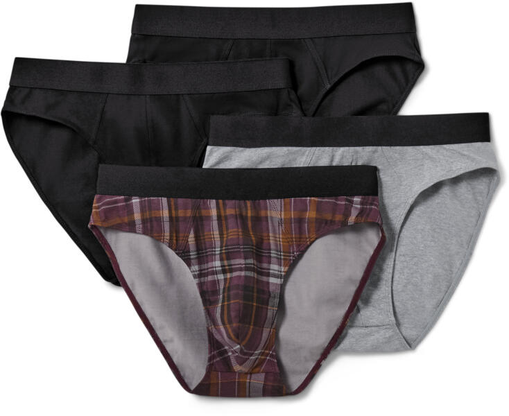 4 db férfi alsónadrág, kockás/szürke/fekete Szín: 2x fekete, 1x melírozott világosszürke, 1x burgundi vörös-fekete kockás Anyag: 95% pamut, 5% elasztán (Creora®) Különösen lapos, rugalmas derékrész puhán bolyhozott belsővelKellemesen puha pamut-sztreccs anyag Kétrétegű elülső betoldásMárkás elasztánnal: formatartók, tökéletesen állnak, rendkívül kényelmes viseletTartós pamuttalEzek az alsók elősegítik a fenntartható gyapot termesztését.