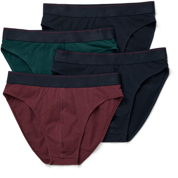 4 férfi alsó Szín: 2x tengerészkék, 1x sötétpiros, 1x zöld Anyag: 95% pamut, 5% elasztán (Creora®) Különösen lapos, rugalmas derékpánt, belseje puhán bolyhozottKellemesen puha pamut-sztreccs anyagKétrétegű elülső betétMárkás elasztánnal: formatartó, tökéletesen áll, rendkívül kényelmes viseletTartós pamuttalGOTS organic – konverziós anyagokból, CU minősítés 809415Ezek az alsók támogatják a fenntartható gyapottermesztést.